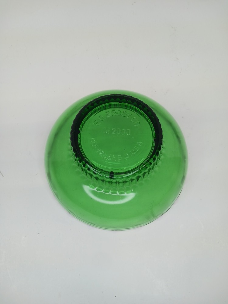 Vintage EO Brody Co M2000 Green Depression Glass Scalloped Ribbed Pedestal Bowl