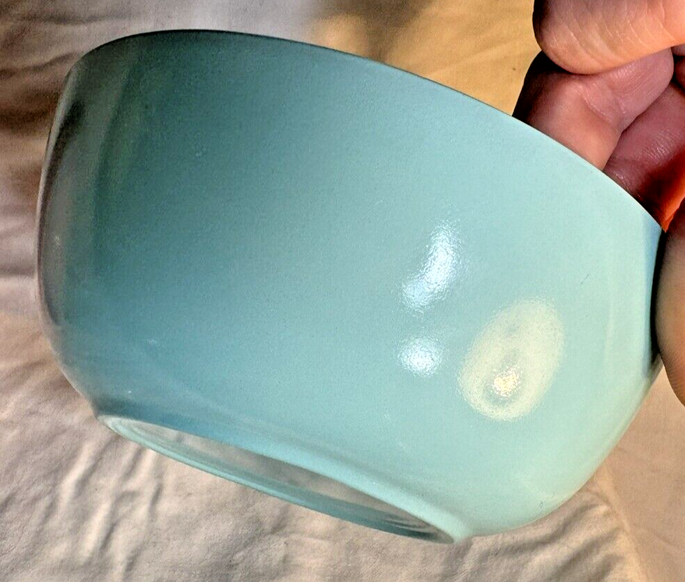 The bowl is in excellent condition. No scratches at all. The Hazel Atlas Blue really pops. If you have any questions please ask, thank you :)