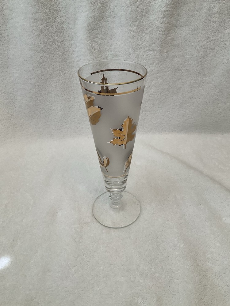 Add a touch of vintage charm to your home bar with this set of eight Libbey Pilsner glasses. The glasses feature a beautiful gold leaf pattern that adds a touch of elegance to any occasion. These glasses are perfect for all occasions, whether you are hosting a dinner party or enjoying a quiet night in. Crafted from high-quality glass, these glasses are stylish and durable. The glasses are decorated with a frosted finish that enhances their beauty. These glasses are perfect for beer enthusiasts who want to enjoy their favorite brew in style.