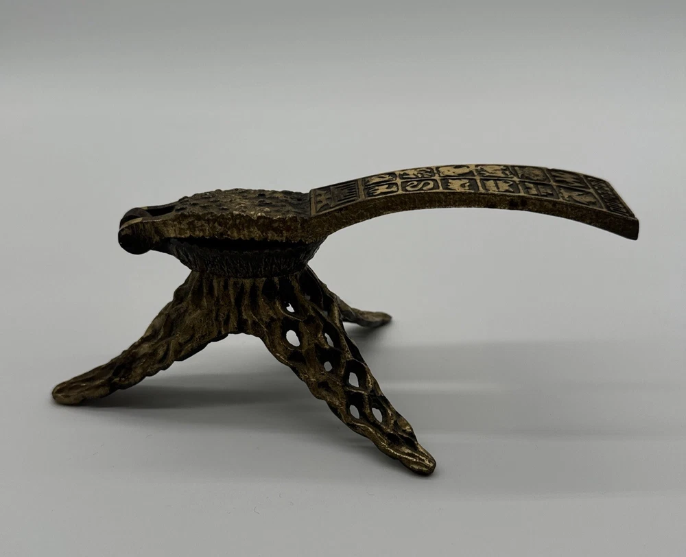 Vintage MCM ornate Brass Oppenheim Israel Footed Nut Cracker Tabletop Jerusalem Pre owned Vintage Good condition with normal signs of wear as expected with age and use Sturdy, solid piece