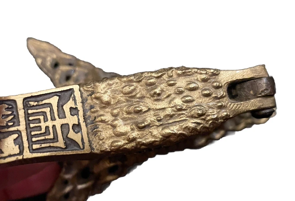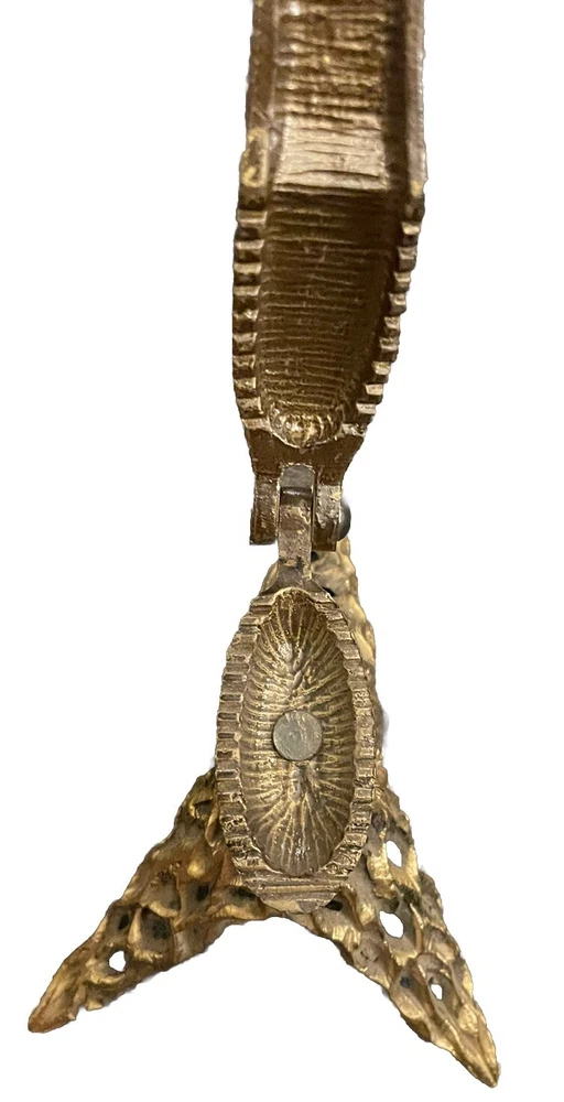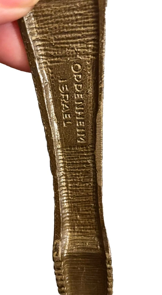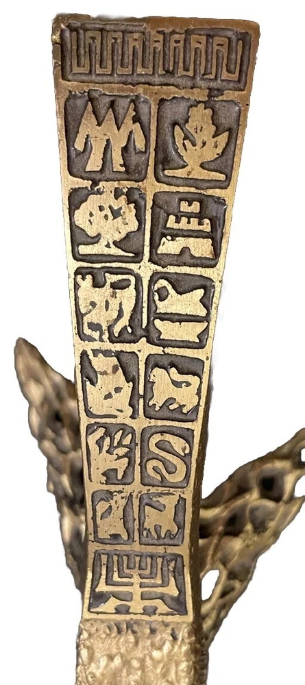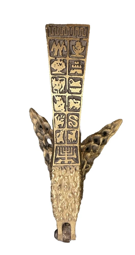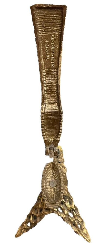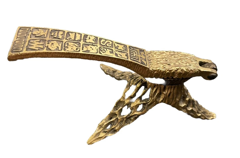 Vintage MCM Ornate Solid Brass Oppenheim Israel Footed Nut Cracker Hieroglyphic