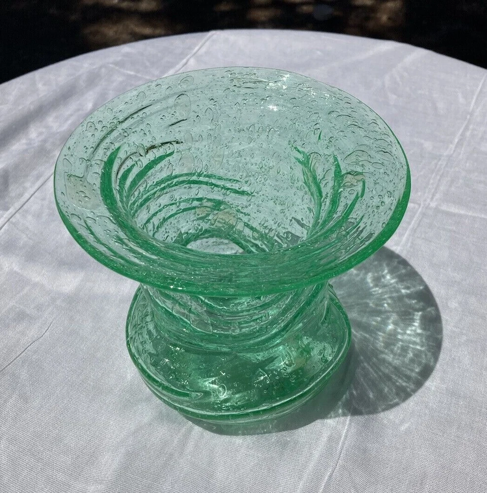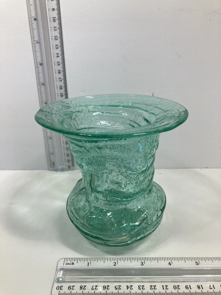 Really unusual piece. Naturally imperfect shape. 5" Wide 5" Tall. They owner had a note stuck to the bottom saying New Jersey Glass. No cracks or chips. Condition Very Good. I'm guessing at the dating of the 60's.