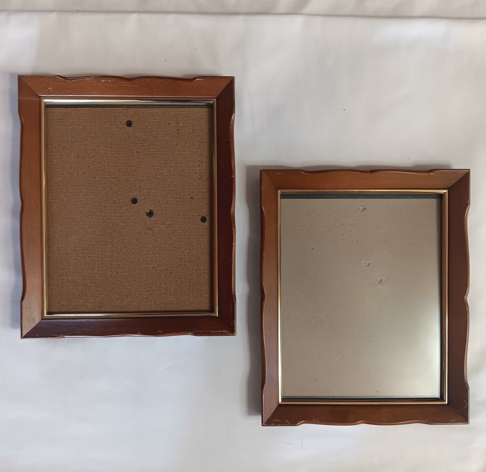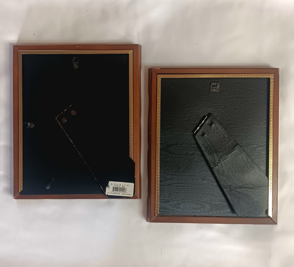 Frames are in good condition. Mid-Century modern brass Frames both hold an 8x10 photo. Take a look at my other frame bundles with combined shipping. I had to replace the back easel on one. Please see the photos for more details as they are part of the description.
