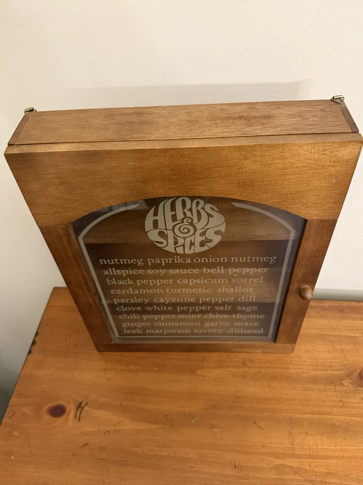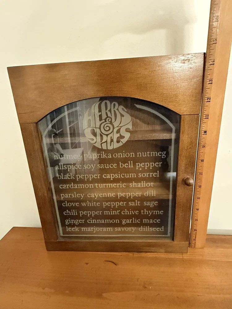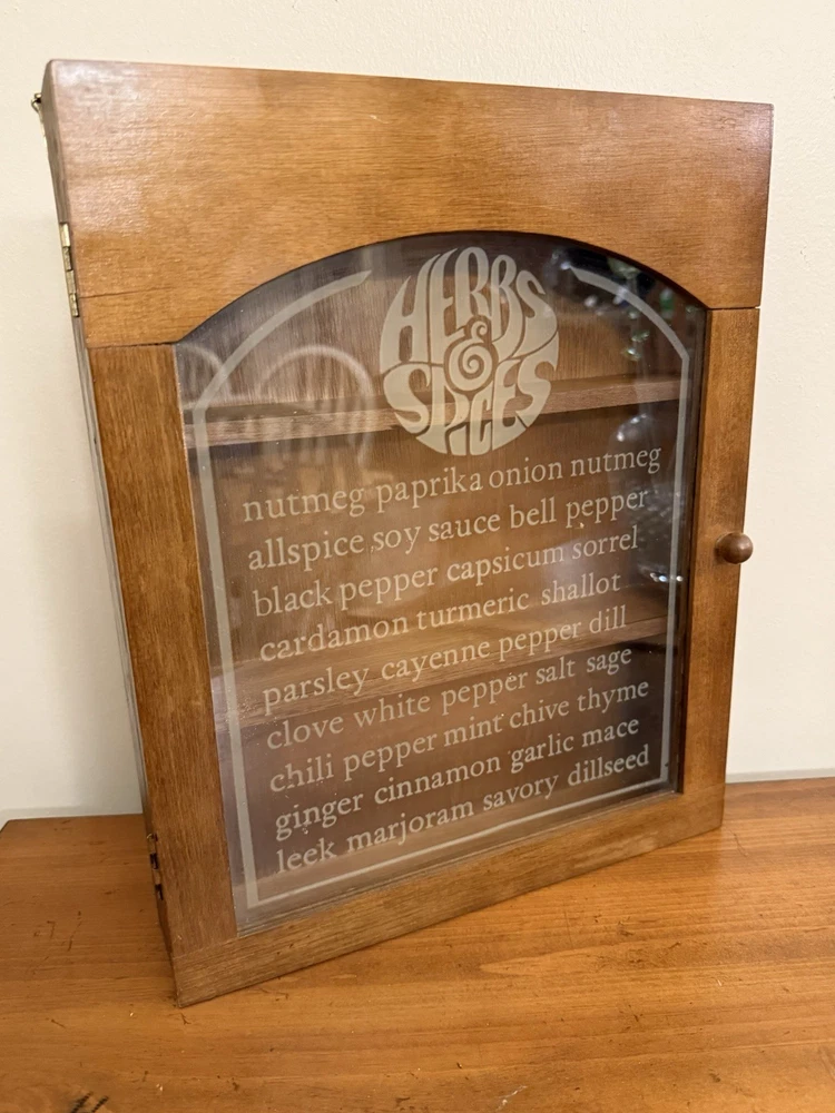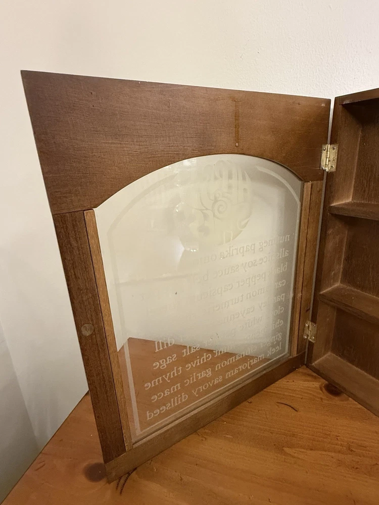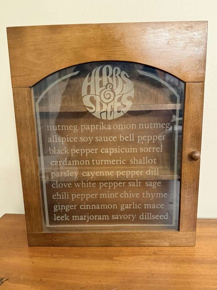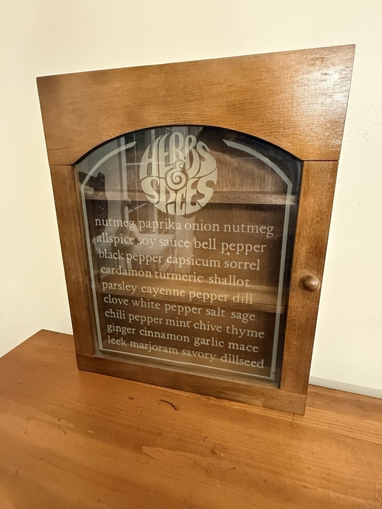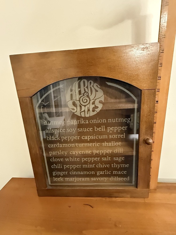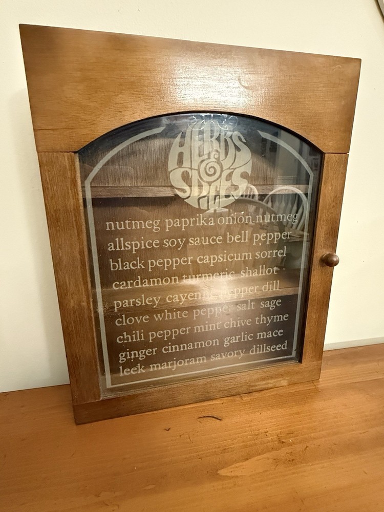 Vintage MCM Wooden Gailstyn Hanging Herb & Spice Cabinet Frosted Door Farmhouse country kitchen decor Good vintage condition- refer to pics