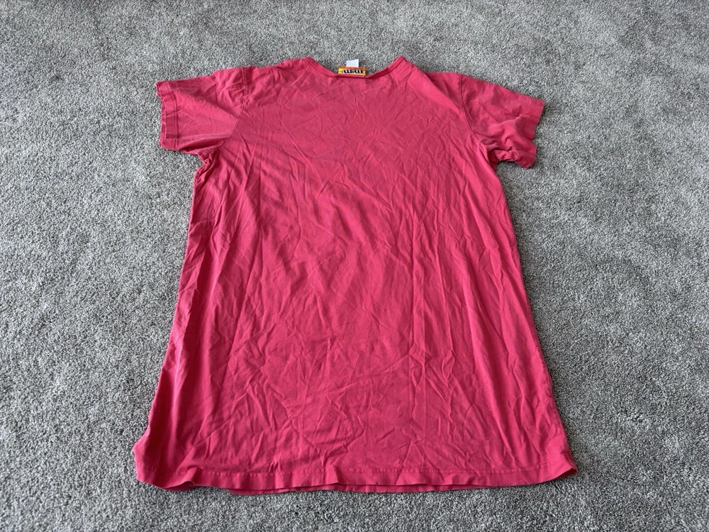 This vintage M&M's night sleep shirt for women features a red color with a graphic print of classic M&M's chocolate candy. Made from 100% cotton knit fabric, this lightweight sleepshirt has a round neck, short sleeves, and a pullover closure. With a one-size fit suitable for sizes small to large, this nostalgic piece is perfect for fans of M&M's looking for a comfortable and stylish sleepwear option with a touch of 90s nostalgia. Perfect for summer, fall, and spring seasons, this machine-washable sleepshirt is a fun addition to any sleepwear collection.