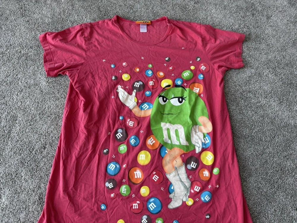 Department: Women Size Type: Regular Season: Fall, Spring, Summer Features: Lightweight Pattern: Graphic Print Neckline: Round Neck Theme: Christmas, Classic, Candy, Chocolate, 90s Material: 100% Cotton Closure: Pullover Vintage: Yes Sleeve Length: Short Sleeve Color: Red Brand: M & M Size: One Size Type: Sleepshirt Garment Care: Machine Washable Handmade: No Fabric Type: Knit Country/Region of Manufacture: China Graphic Print: Yes Personalize: No
