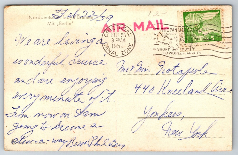 Vintage MS Berlin Norddeutscher Lloyd Bremen Ocean Liner Cruise Ship Postcard Z12 Collectible Maritime Memorabilia
