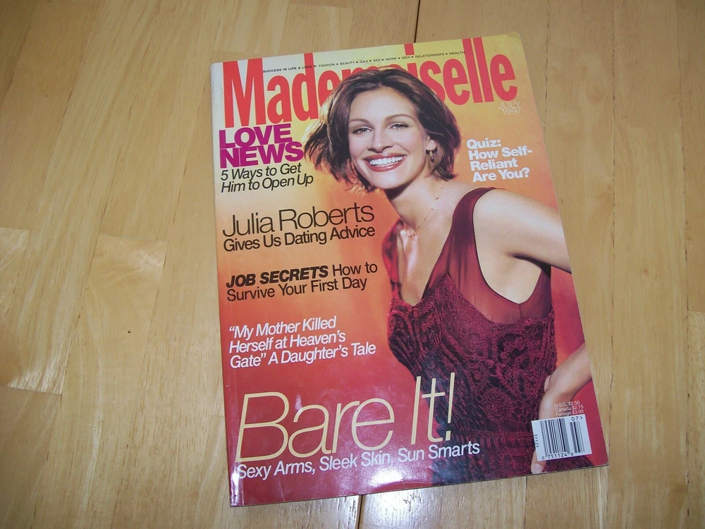 Up for Auction, (Original) Mademoiselle Magazine from July 1997 with Julia Roberts on the Cover.. . ***Rare, original Mademoiselle magazine with features on Julia Roberts, 90's fashion, Heaven's Gate & many others....from my personal stash and has light wear on the cover, inside is clean .. ***Shipping is ***FREE*** w/ USPS Ground Advantage with tracking included..... Feel free to email me w/ any questions!!!