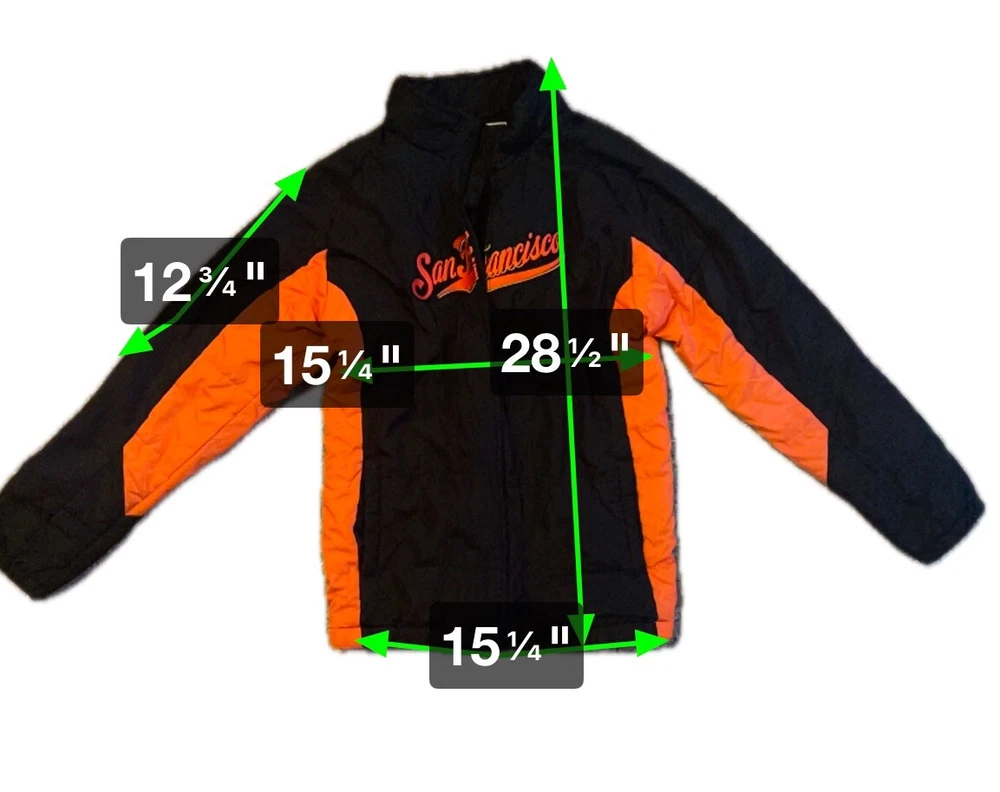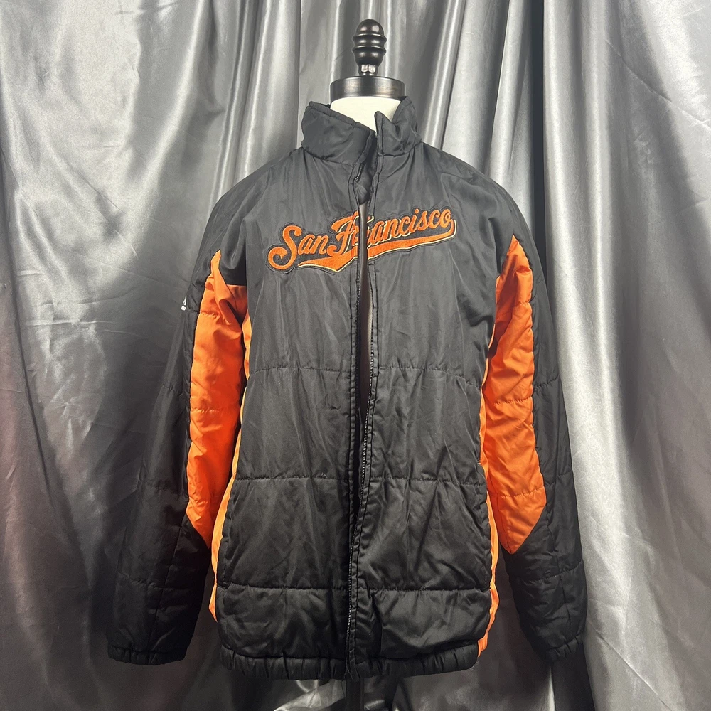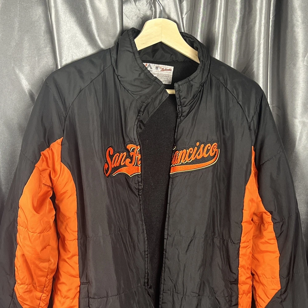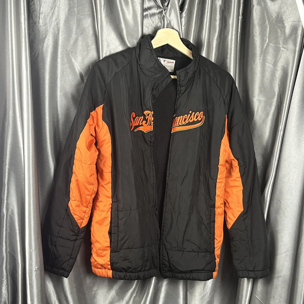 VTG Majestic San Francisco Giants Jacket Youth Large 14/16 MLB Black Script *zipper is broken and needs to be replaced Condition shown in photos Please make sure to view and zoom in on all photos to determine the condition of the jacket. 🧼 Jacket has been cleaned and sanitized to meet the platform standards Questions? Want more pics? Send a DM 🙂 📬 Ships same day or within 24/hrs! 🥳 Full refunds will be given for returned items sent in original condition.
