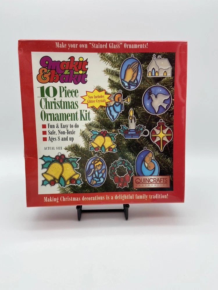 Craft your own stunning stained glass Christmas tree ornaments with the Vintage Makit & Bakit 10 Piece Kit. This set allows you to create beautiful, intricate designs that capture the holiday spirit and add a personal touch to your festive decor. Proudly made in the United States, this kit is a great way to engage in a timeless hobby or to gift to someone who loves unique and handcrafted items. Whether you're an experienced crafter or looking for a new holiday tradition, this Makit & Bakit kit is sure to delight. This is still factory sealed. Look at all of the pictures to see condition. Stand is NOT included