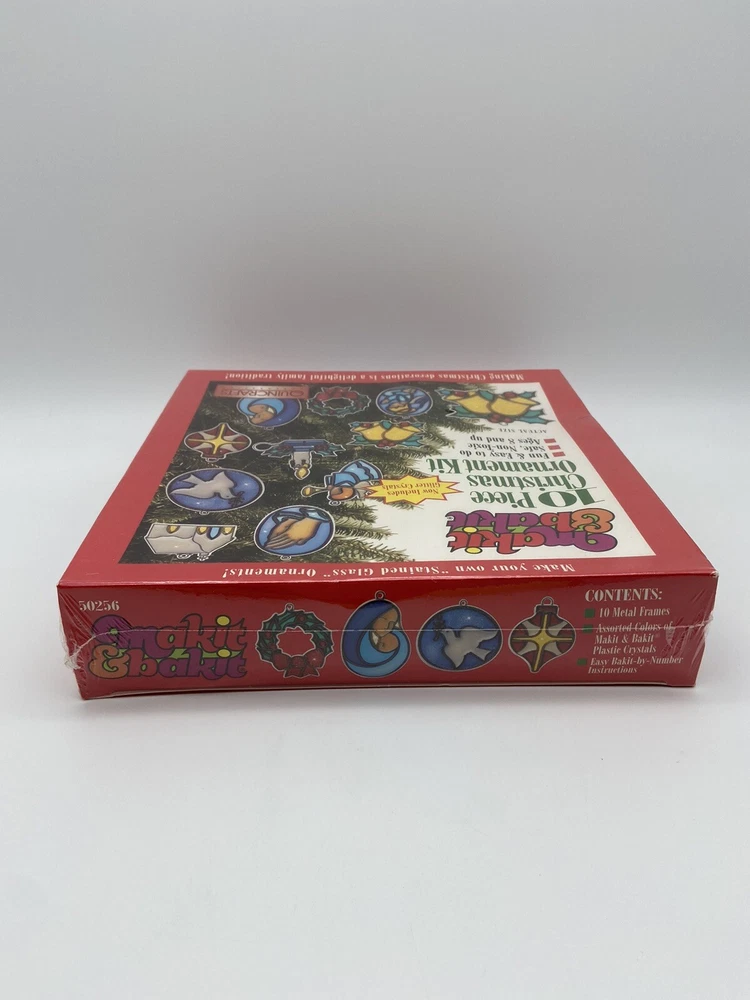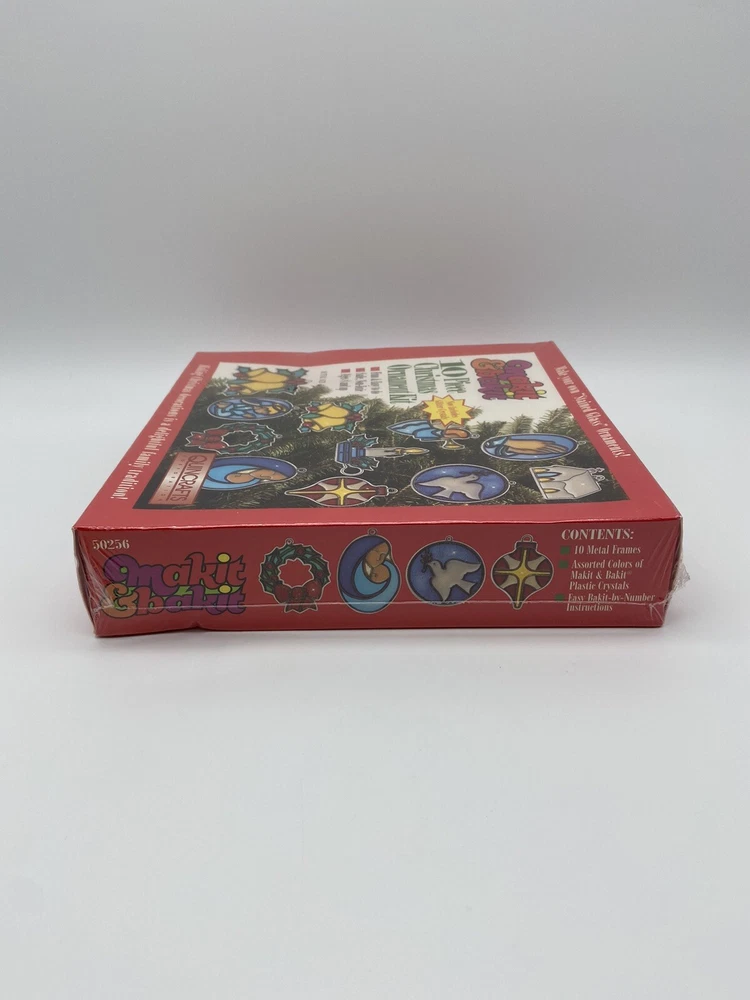 Vintage Makit & Bakit 10 Piece Stained Glass Christmas Tree Ornament Kit NEW