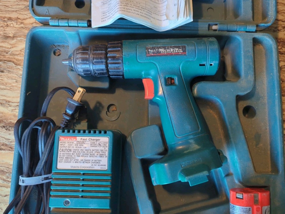 Vintage Makita 6222D Cordless Driver Tool, Battery, & Charger. Battery does not hold a charge. Some marking on items as shown in photos. Driver not tested as battery doesn't charger.