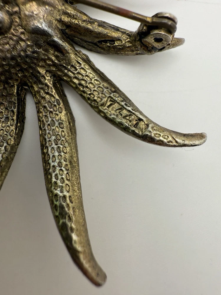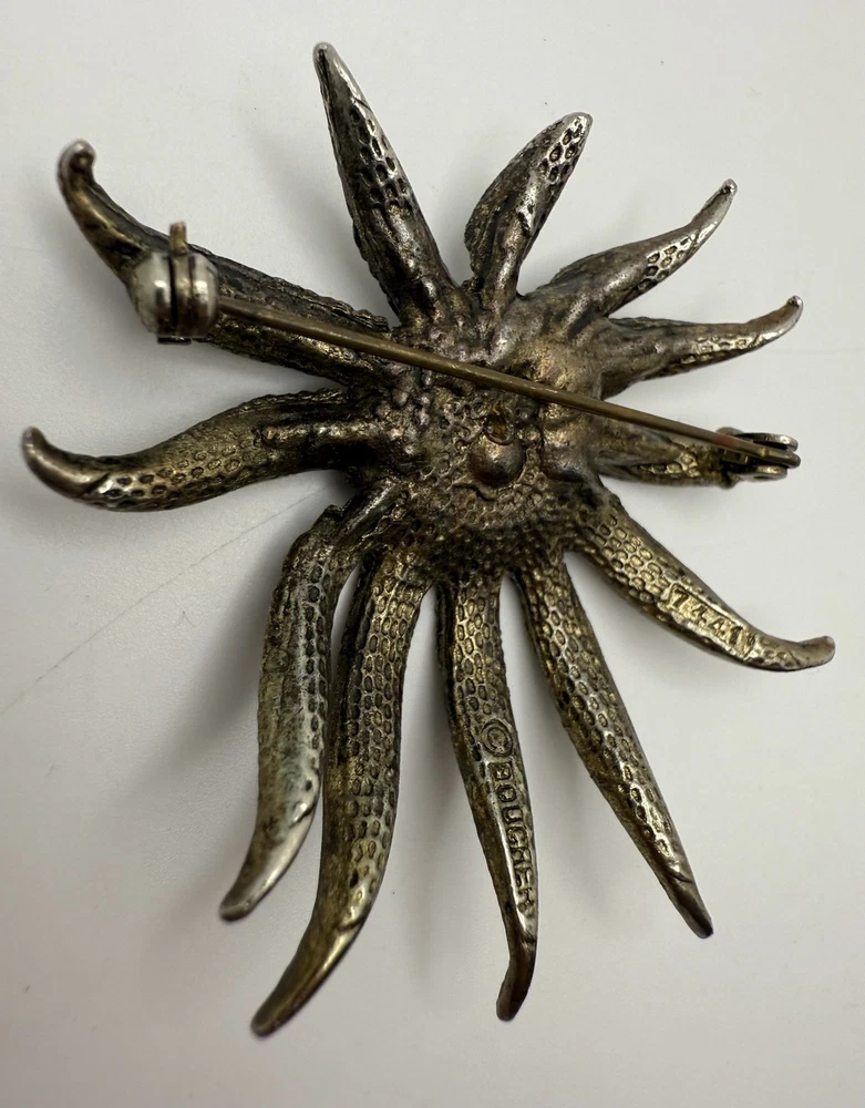 ✨ Vintage Marcel Boucher Starburst Pin | 1950s Textured Metal Brooch | Signed + #7441 A dramatic and iconic piece from renowned designer Marcel Boucher, this striking mid-century starburst pin captures the bold elegance of 1950s costume jewelry. 🔸 Details: • Designer: Marcel Boucher • Era: 1950s • Signature: Stamped Boucher with design number #7441 • Design: Radiating starburst / sunburst motif with deeply textured metal finish • Size: Approx. 2.25” diameter • Metal: Gold-tone metal (textured + polished contrast) • Closure: Secure rollover clasp • Condition: Excellent vintage condition — no missing parts, working clasp, minimal wear. This brooch is a collector’s dream — dramatic yet refined, and unmistakably Boucher. Adds instant vintage glamour to any jacket, blouse, or hat. 💫 A statement piece from a master of American costume design. ✨💖✨ Offers Encouraged 💌