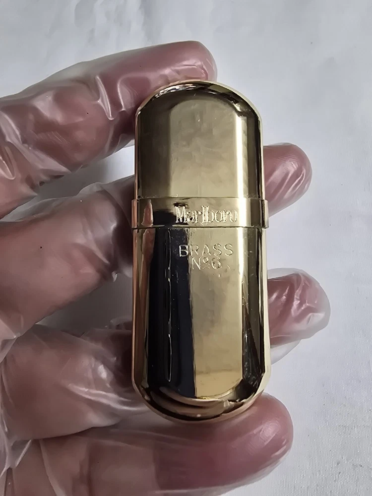 This vintage Marlboro No. 6 brass lighter is a rare find for collectors. With its sleek design and iconic branding, it's sure to be a standout piece in any collection. The lighter has never been used and is in excellent shape, making it a great addition to any collection or a unique gift for a loved one. Lighter still sparks. Lighter will need to be refueled before use. We'll combine shipping. If you are bidding or buying more than 1 item, please message us and let us know that you are still bidding or planning on buying more items. Please look at all the pictures. We took detailed pictures of the item. How the pictures look like is how the item will be shipped. Thank you for looking. Please be sure to check out my other items