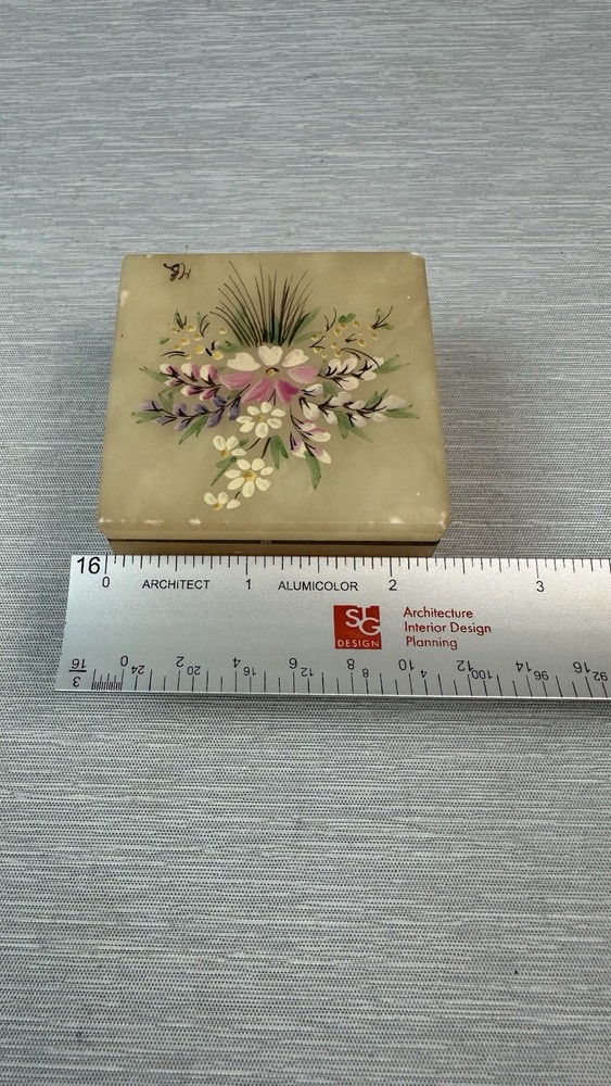 Vintage Marshall Fields Alabaster Hand Painted Jewelry Trinket Box Made in Italy