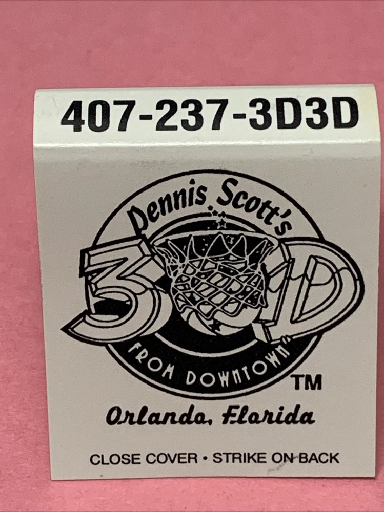 Vintage Matchbook Dennis Scott’s 3D From Downtown Orlando, Fl gmg unstruck