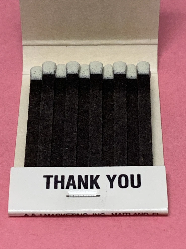 We recently purchased the entire matchbook collection from the estate of Fred Houk, A central Florida collector with over 250,000 matchbooks, covers and boxes in his collection! Google him, you will find dozens of newspaper articles and interviews about his extensive collection! We will be adding listings daily! The matchbook pictured is the exact matchbook you will receive. Please view the pictures carefully for the best description of condition. Your matchbook will be shipped in a coroplast sleeve that is crush proof and weather resistant. The package will be properly marked for transit. This listing complies with all eBay and USPS rules and regulations. This item is not available for international shipping. Domestic shipping will be via GROUND TRANSPORTATION ONLY.