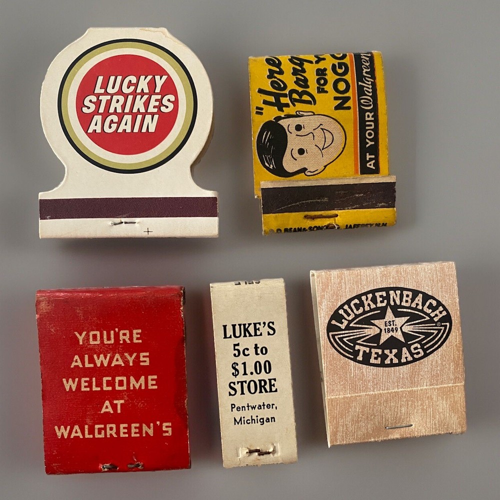Vintage Matchbooks Jeris Antiseptic Hair Tonic Walgreens Lucky Strike Luckenbach 5-Pack