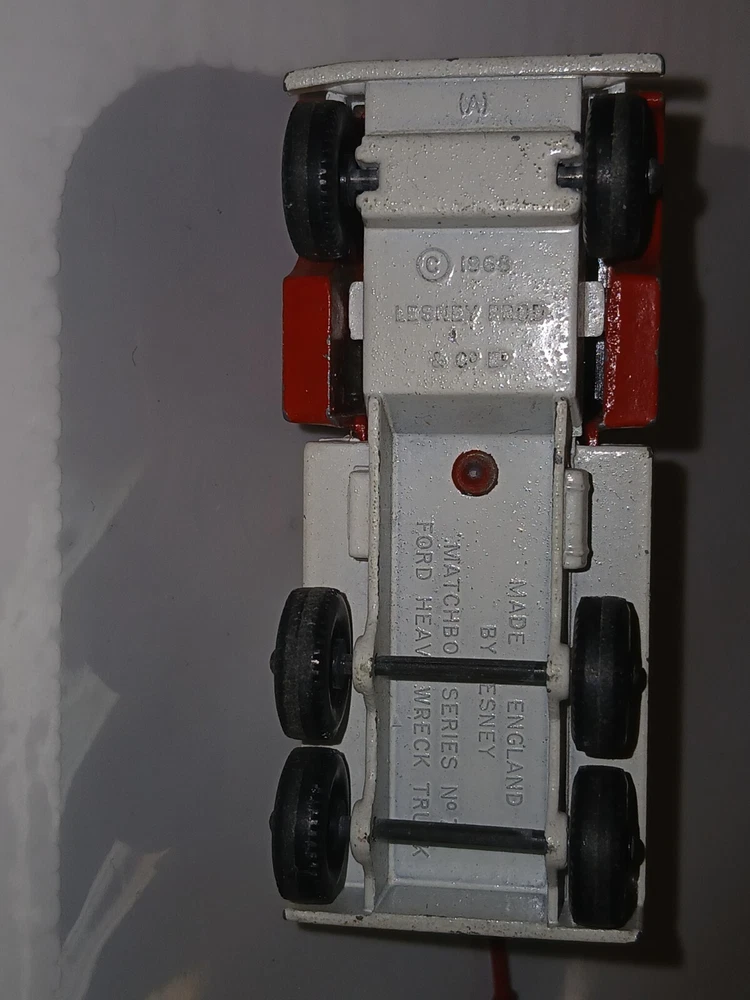 Please look at the pictures. Truck has no box. The product is a Vintage Matchbox No 71 Ford Heavy Wreck Truck Esso by Lesney England from the Hot Wheels Redlines series. It is a diecast toy truck featuring a Ford design, part of the Hot Wheels brand collection.