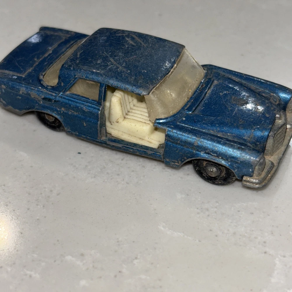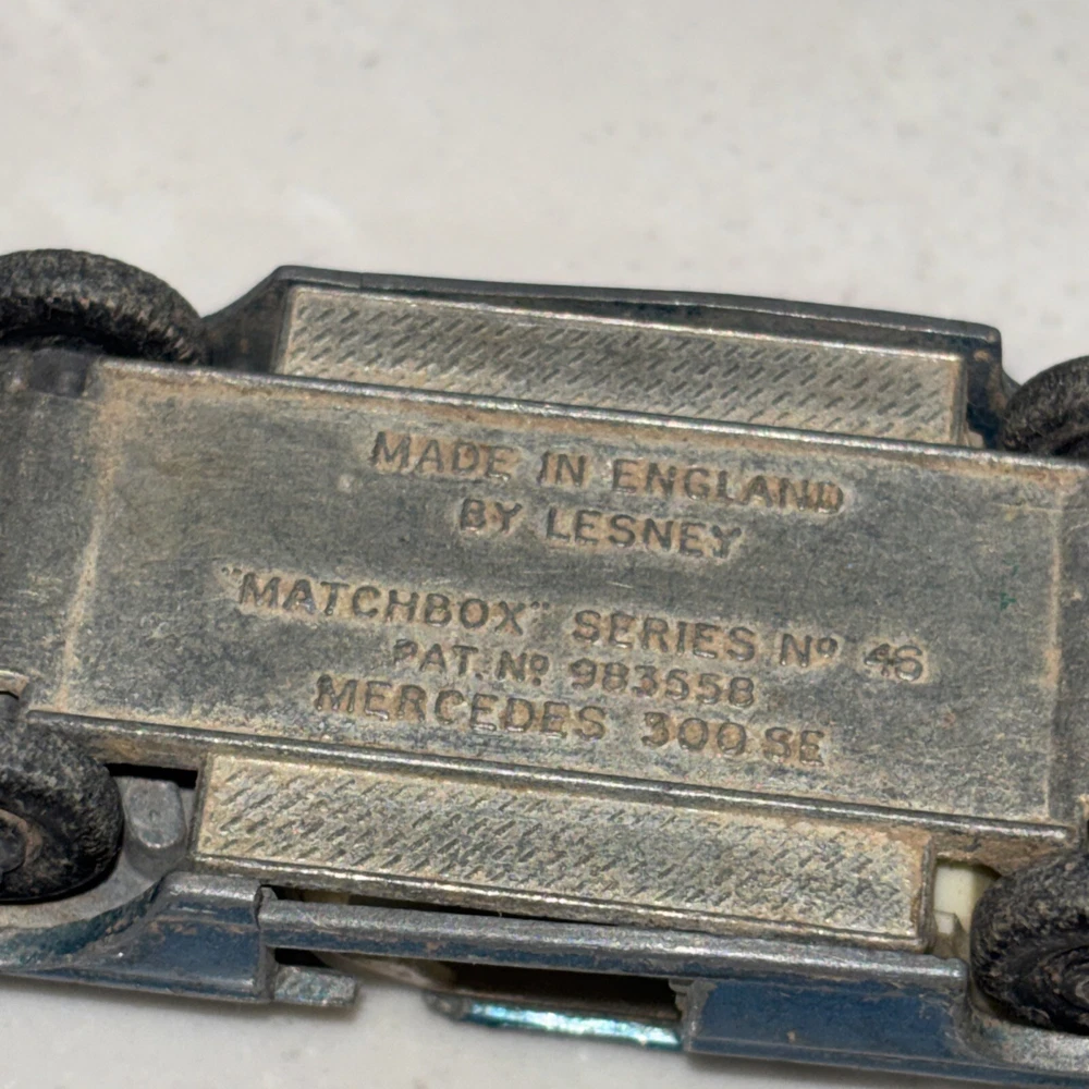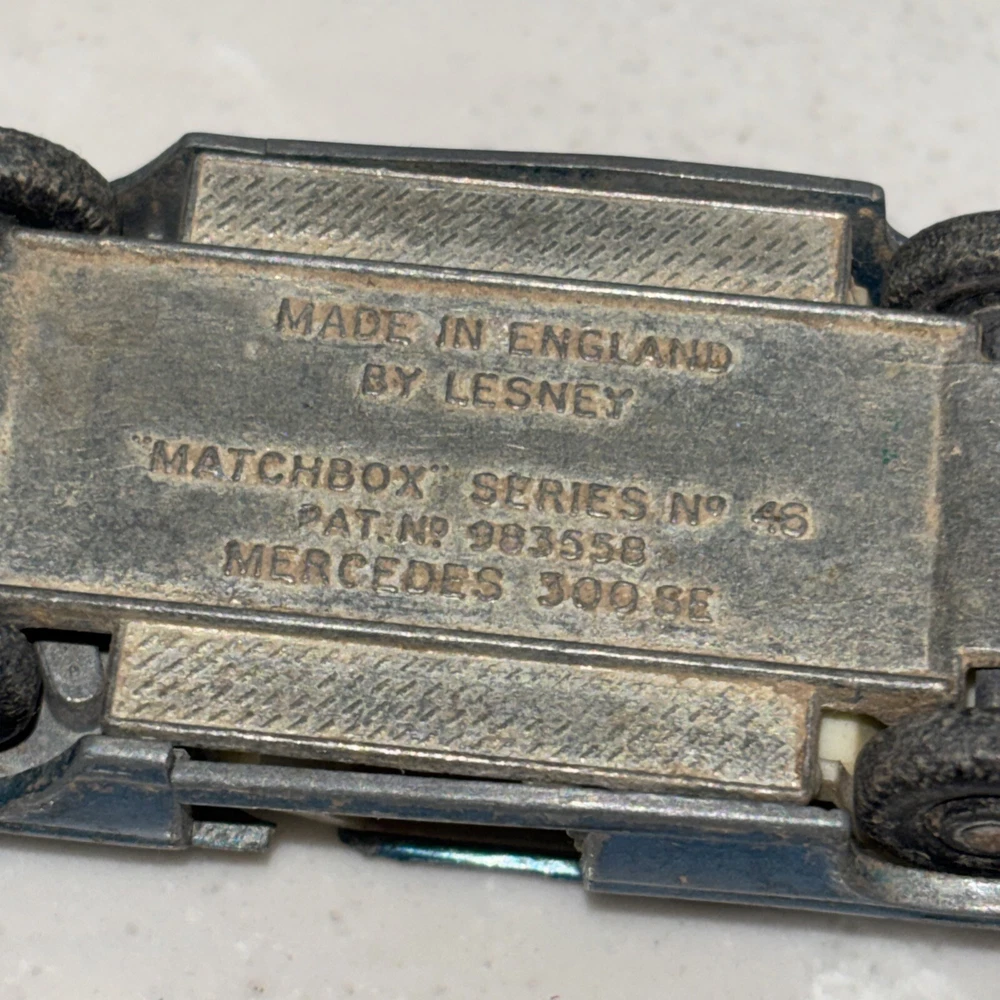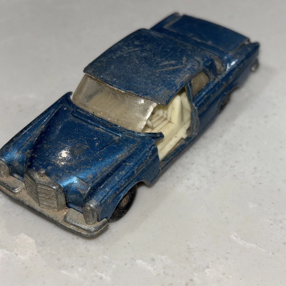 The Vintage Matchbox Series No. 46 Mercedes 300 SE is a diecast toy car made by Lesney in England in 1969. This model replicates a blue Mercedes-Benz 300SE at a scale of 1:64. It is part of the Matchbox brand and is suitable for both boys and girls as a collectible vintage toy vehicle. Made with quality craftsmanship, this toy represents a piece of toy car history from the United Kingdom.