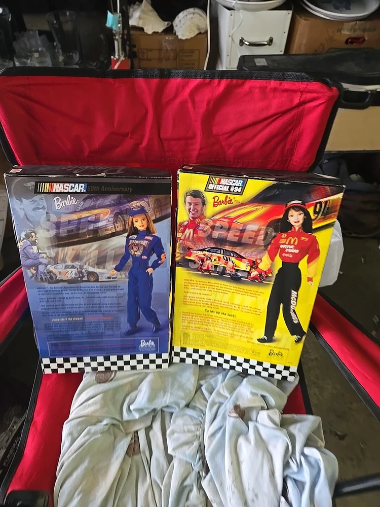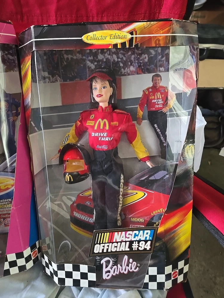 This is a lot of two Barbie dolls from Mattel's NASCAR Collectors Edition line. The dolls were manufactured in 1998 and 1999 and are still in their original packaging. They feature Barbie dressed in racing gear and accessories specific to NASCAR. This set includes two dolls and is a great gift for collectors.