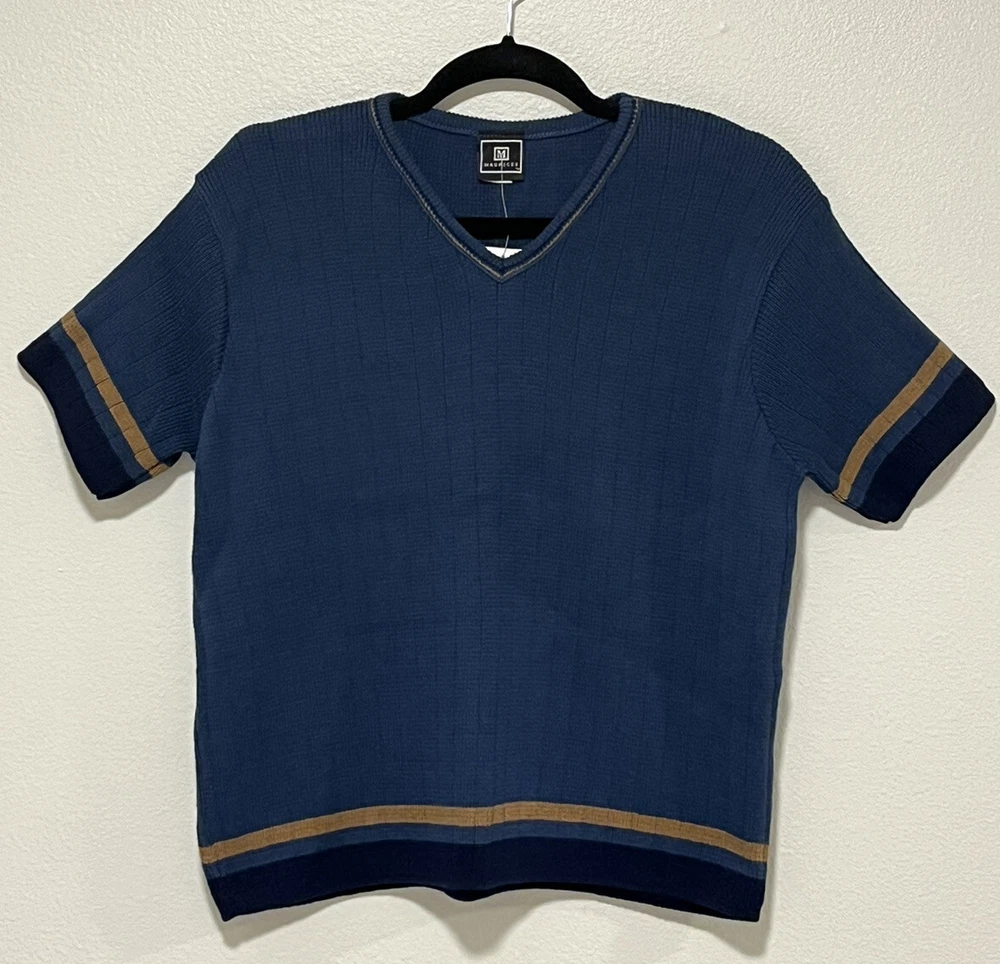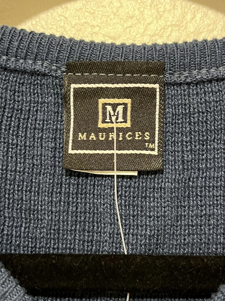Brand: Maurices Type: Sweater Theme: Preppy,Classic Size: L Fit: Classic Vintage: Yes Department: Women Style: Pullover Color: Blue Neckline: V-Neck Sleeve Length: Short Sleeve Material: 100% Cotton Size Type: Regular