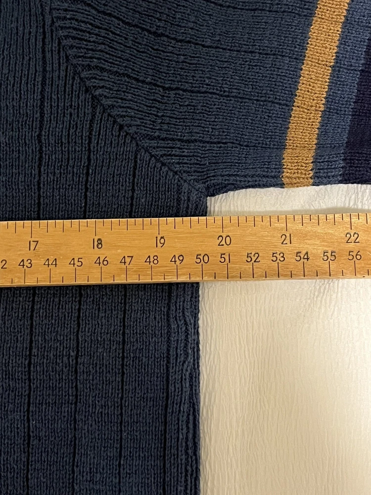 Vintage Maurices Cotton V-neck Sweater Large Blue Tan Classic Preppy Academia See photos for measurements. Armpit to armpit and top of shoulder to bottom of sweater.