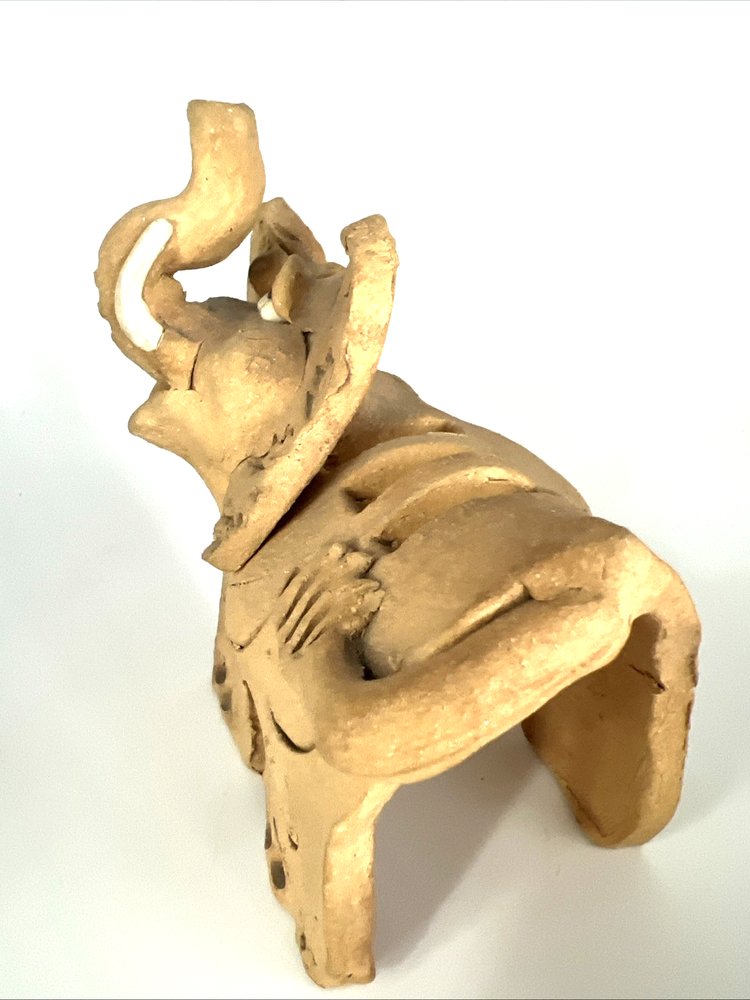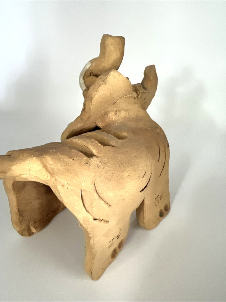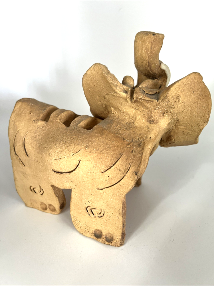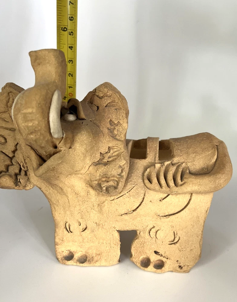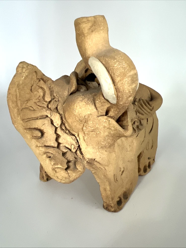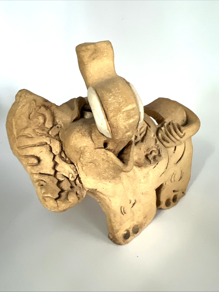 This vintage clay elephant sculpture is such a charming piece! The intricate carving and unique design make it a standout in any collection. The craftsmanship is excellent, and it adds a playful, artistic touch to my space. Arrived safely thanks to the careful packaging—highly recommend!