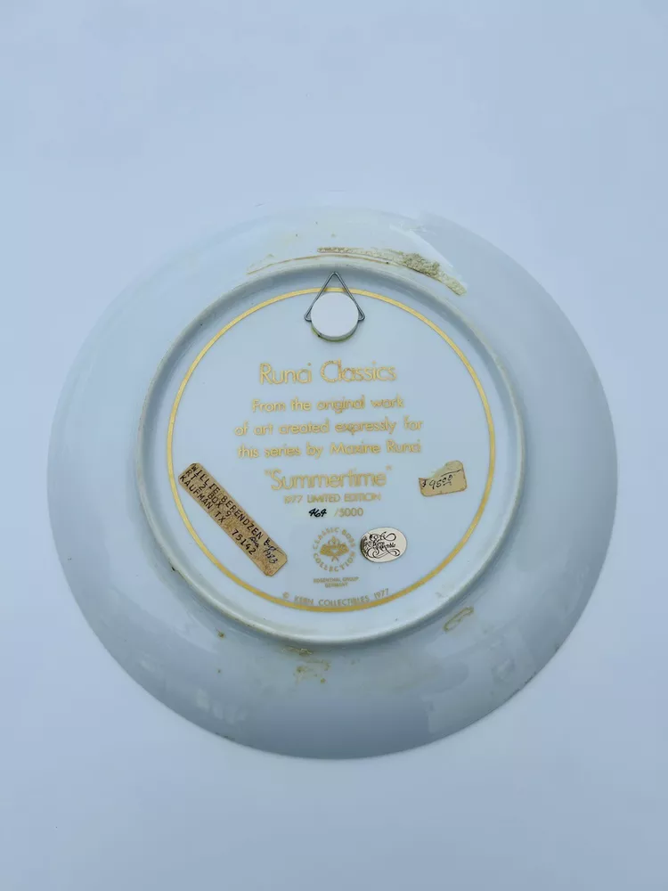 This limited edition Rosenthal plate from the Maxine Runci Classics collection is a beautiful addition to any collector's collection. Featuring a summertime scene, this multicolor plate is made of high-quality porcelain with an art deco style. The plate was produced in Germany with pottery techniques and is in excellent shape for all occasions. The plate has a unique design with Italian culture and is perfect for collectors of art pottery. This vintage piece is a must-have for anyone who appreciates the beauty of collector plates. Add it to your collection today! Beautiful piece No chips or cracks 8.19.24