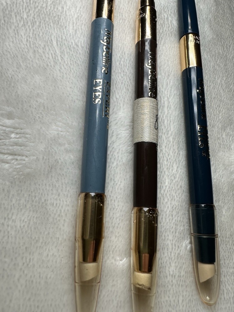 Vintage Maybelline EXPERT EYES Eye Liner lot including demo colors These were handed down to me by someone who worked with Maybelline in the 90s. The middle tape with number leads me to believe this was some kind of tester at the office! They look full, one seems to have been sharped before.