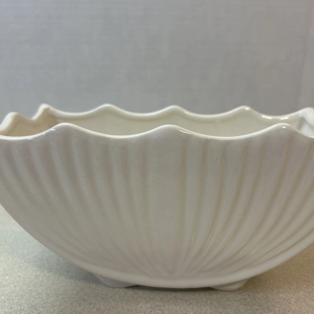 Type:PlanterFinish:GlossyShape:scallopedMaterial:CeramicProduction Technique:PotteryYear Manufactured:1940Time Period Manufactured:1940-1949Subject:DesignCountry/Region of Manufacture:United StatesIndoor/Outdoor:IndoorOriginal/Licensed Reproduction:OriginalBackstamp:ImpressedColor:WhiteTheme:scallopedBrand:McCoyPattern:ScallopedVintage:Yes