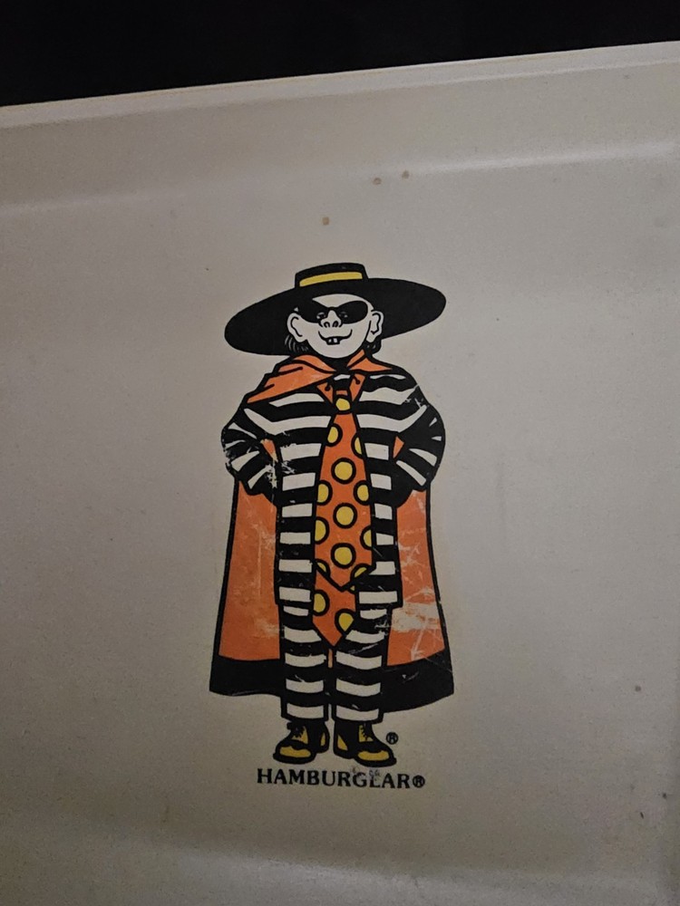 This is a vintage McDonald's plastic child's Happy Meal tray featuring the Hamburglar character. The tray is multi-color and original, perfect for collectors of McDonald's memorabilia or nostalgic restaurant and fast food items. It is a unique piece of advertising collectible representing the fast-food chain.
