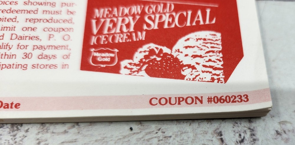 Vintage Meadow Gold Coupon Booklet 50 Cents off Ice Cream No Expiration
