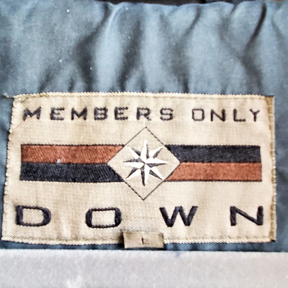 The 90's knew fashion and this Members only Down Puffer Coat is no exception! Hunter green. Zipper works but, it's missing the original pull tab. Otherwise, this Coat is in great condition! 52" Chest 28" Length This Members Only coat for men is a must-have for any fashion-savvy individual. The tan color and solid pattern make it a versatile piece that can be worn for various occasions, such as travel, casual outings, or workwear. The jacket is made of poly cotton and features a down insulation material, making it windproof and water-resistant. The coat has a full zip closure with an elastic waist and pockets for added convenience. It also comes with a collared design and snap and drawstring closures. This vintage piece is perfect for those who love classic styles and is available in size L. Made in Indonesia, this puffer jacket is a great addition to any wardrobe.