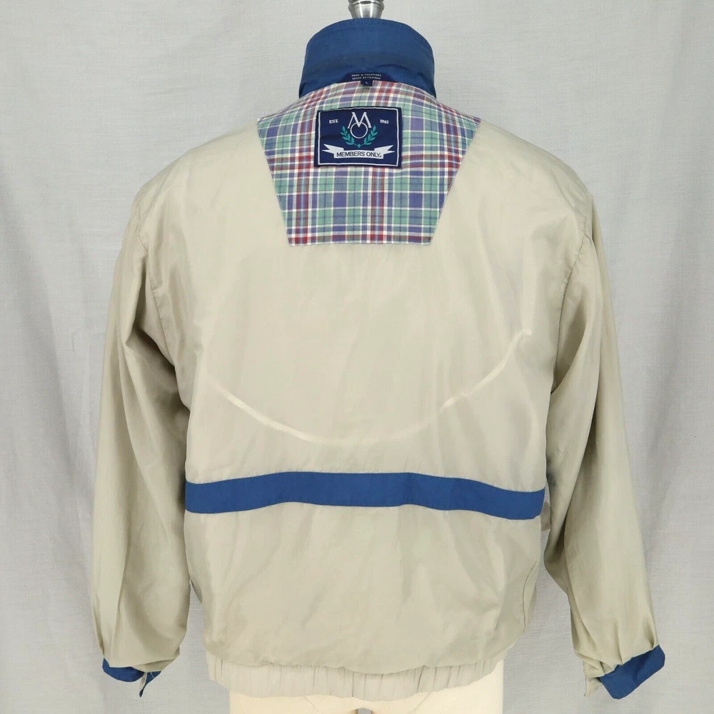 Members Only Jacket Men's Large Beige Full Zip Lightweight Pockets Lined Vintage * Armpit to armpit: 26" * Length: 27" * Sleeve: 26" * Size: Large Men's * Color: Beige * Excellent condition. See pictures. All items from smoke-free, pet-free home. Thank you for stopping by my listing.