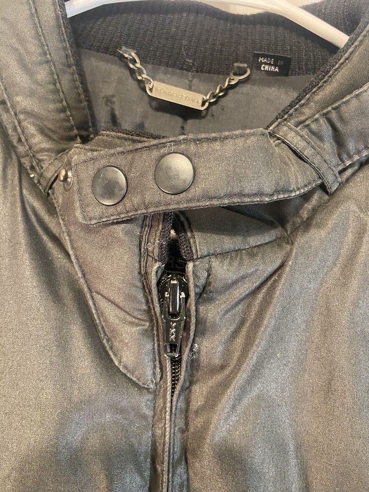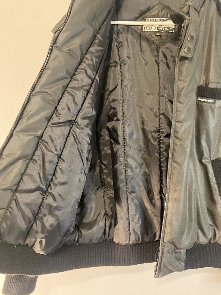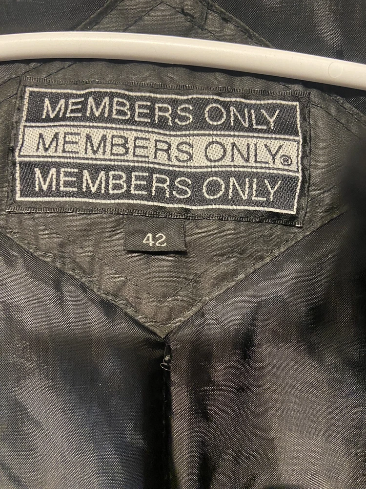 This vintage Members Only jacket is a must-have for any fashion-forward man. With a classic black color and a mid-length bomber style, this jacket is perfect for any occasion, from casual wear to workwear to parties. The jacket features a full zip closure with buttons, a band collar, and the iconic Members Only logo on the front. Made from lightweight knit polyester fabric and insulated with polyester, this jacket is perfect for fall, winter, and spring seasons. It also has multiple pockets, making it practical for outdoor activities like hiking, skiing, and cycling. This jacket is a true gem for anyone who loves nature, nautical, and outdoor themes.