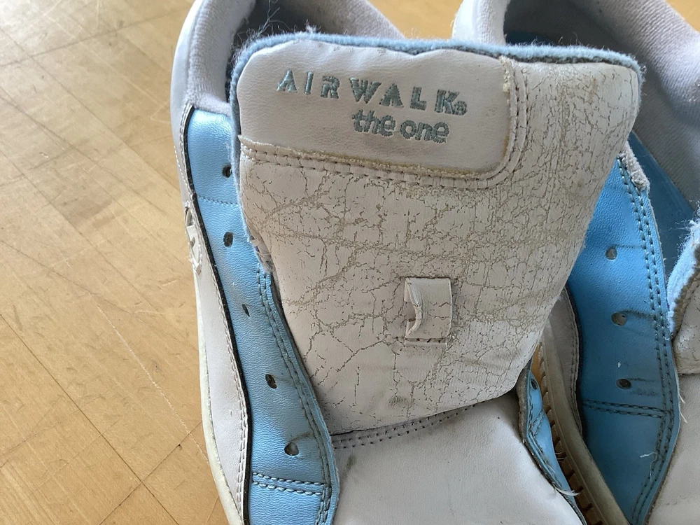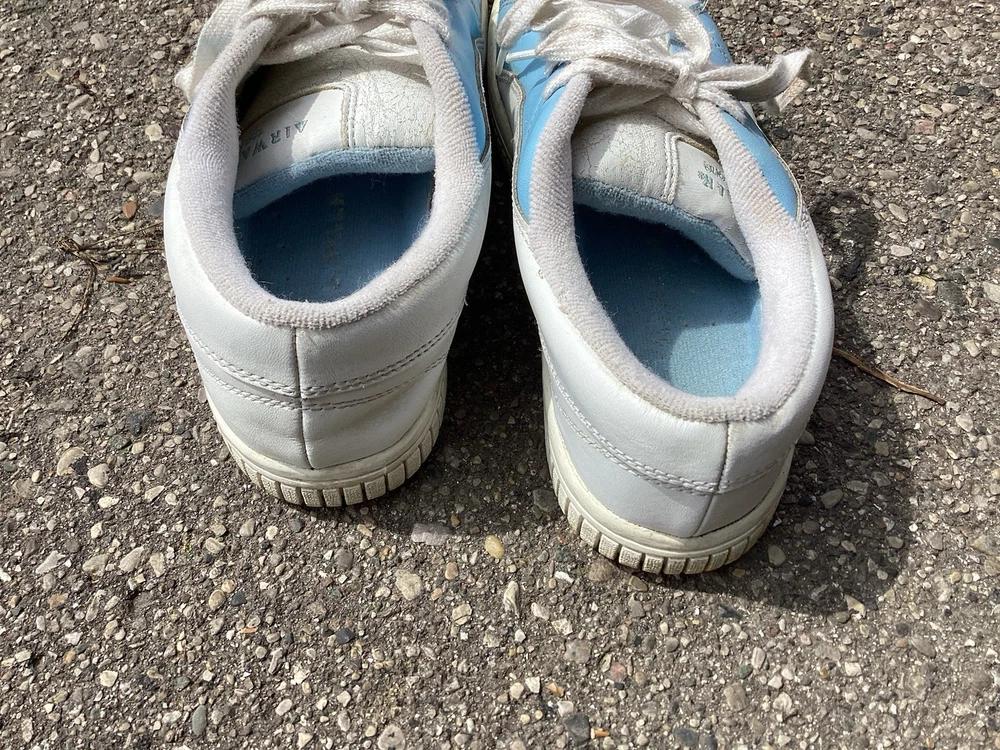 Shoes have a fair amount of wear, use, scuffs and the tongue area is flaking, peeling off. Soles are in good shape. Men’s 9.5 not exactly sure on the age, late 1990s, early 2000s era. Fast free shipping Updated description