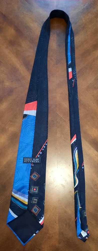 Material:PolyesterLook:Art DecoStyle:Neck TiePattern:Art Deco AbstractGender:MenDecade:1990sOriginal/Reproduction:OriginalOccasion:FormalColor:Multi-ColorBrand:Henry Alan NeckwearCountry of Origin:United StatesDepartment:MenType:Tie