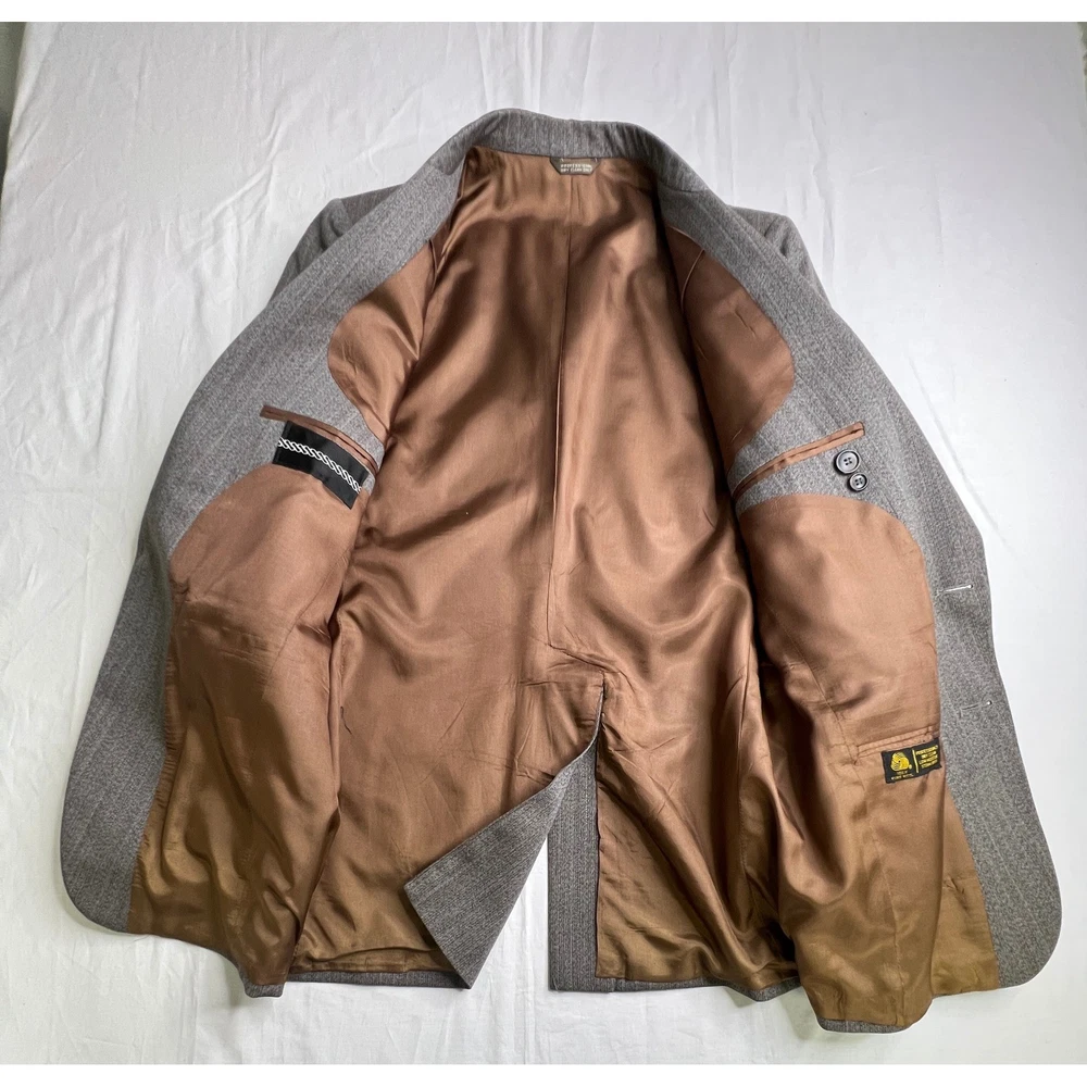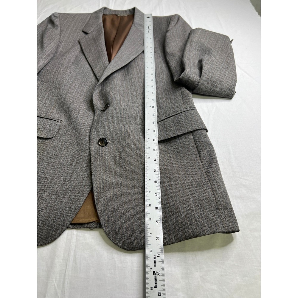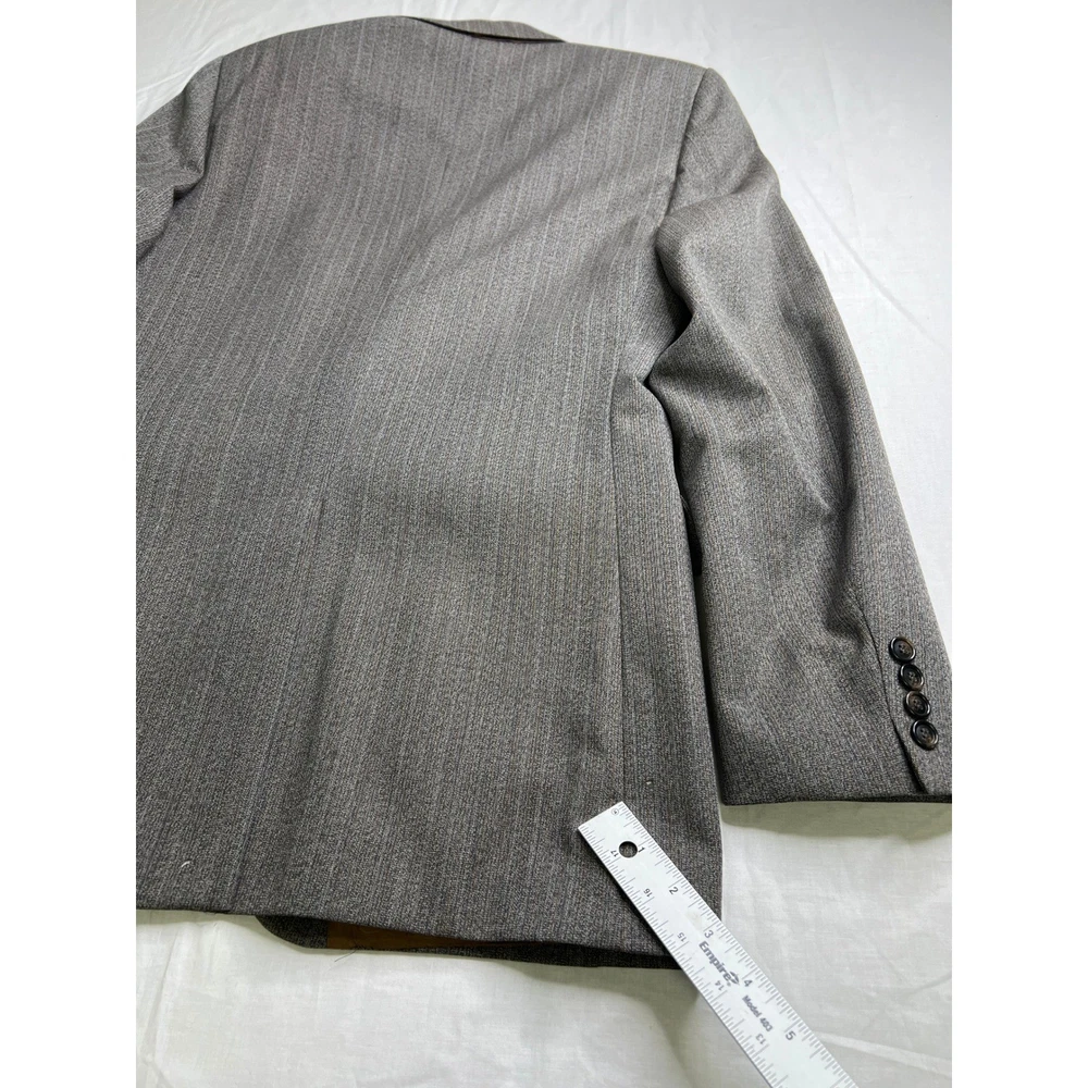Embrace timeless sophistication with this vintage herringbone blazer. A classic cut brings to mind images of roaring fires in libraries and cozy hunting lodges. The fully lined interior ensures a comfortable fit, while the two-button closure and flap pockets offer a polished and functional design. Perfect for adding a touch of heritage style to a business meeting, a weekend brunch, or an evening at the theater. Measurements: • Shoulder to shoulder: 18 inches • Pit to pit: 22 inches • Length: 31 inches • Sleeve length: 24 inches Type: Blazer Outer Shell Material: Wool Department: Men Lining Material: Polyester Insulation Material: Polyester Theme: Classic, Retro Fabric Type: Tweed Features: Lined, Single-Breasted Accents: Button Pattern: Herringbone Performance/Activity: Golf, Hiking, Walking Closure: Button Occasion: Business, Casual Keywords: mens blazer, herringbone blazer, wool blazer, sport coat, vintage blazer, brown blazer, gray blazer, mens jacket, classic mens clothing, retro blazer, dress jacket, two button blazer