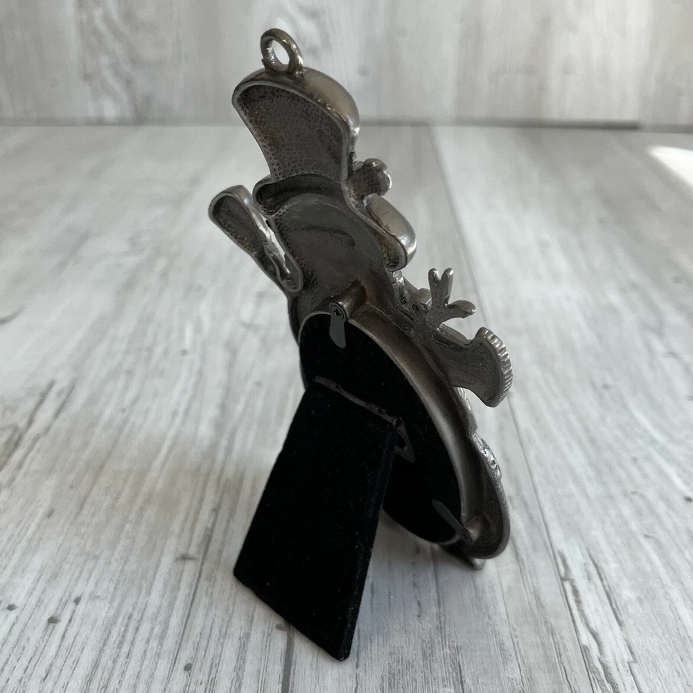Vintage Metal Silver Snowman Table Top Picture Frame or Hanging Ornament 6"