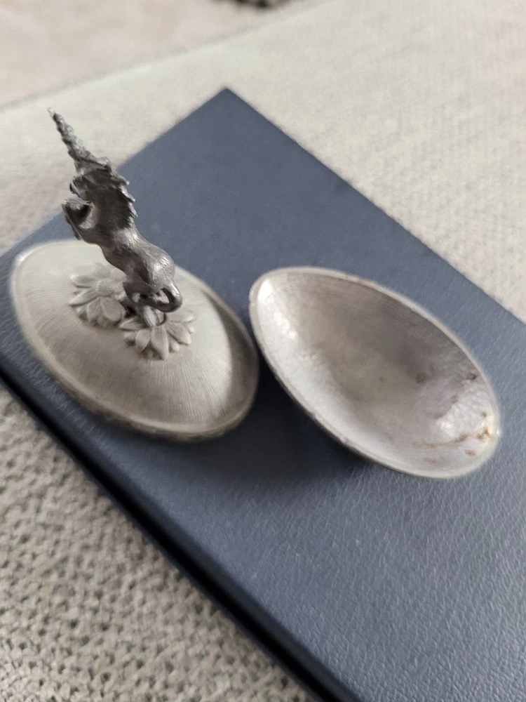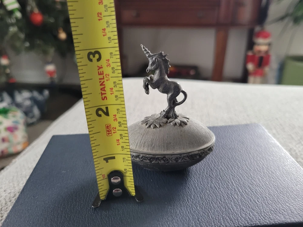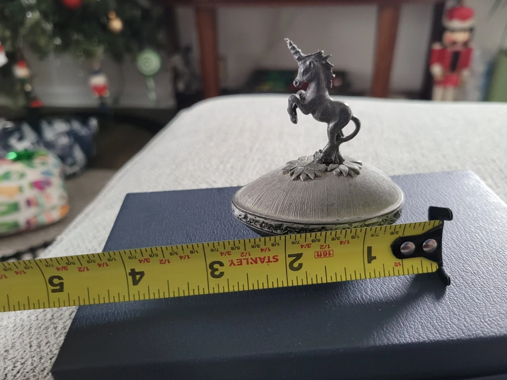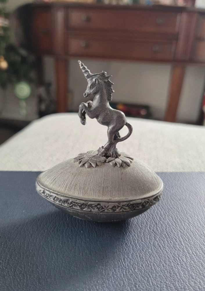 Vintage Metal Unicorn Figure Egg Shape Trinket Box 1980 Yorkshire Keepsake Jar