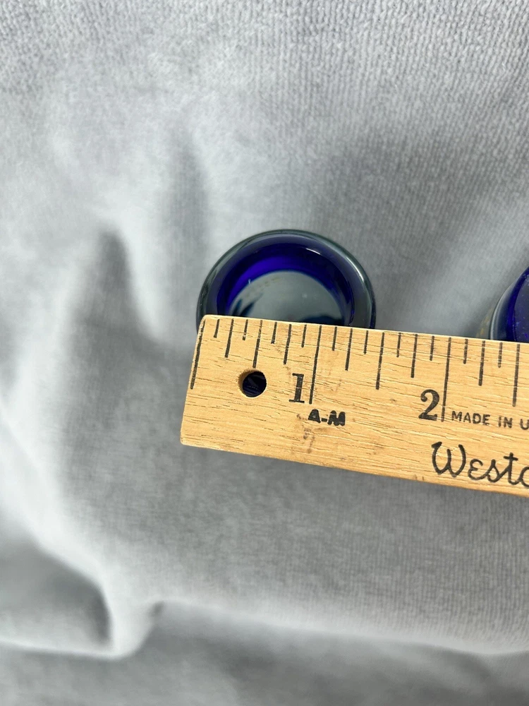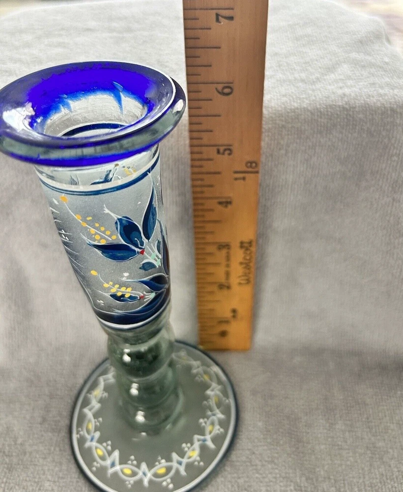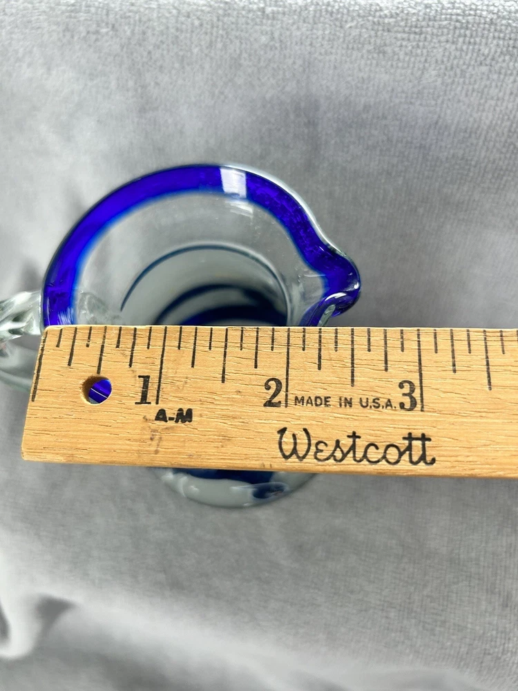 Vintage Mexican Blown Glassware Pitcher Creamer Candlestick Blue Cobalt Trim