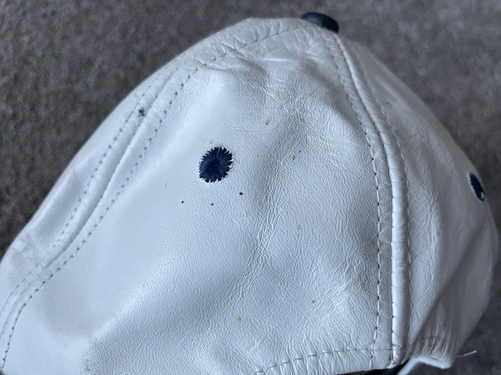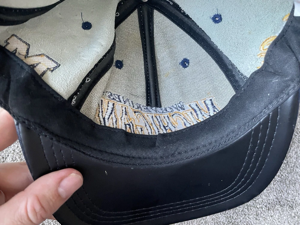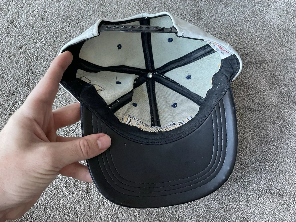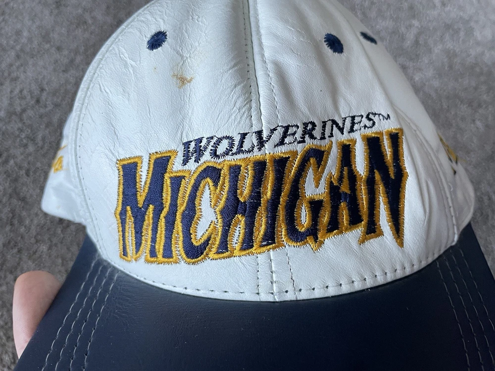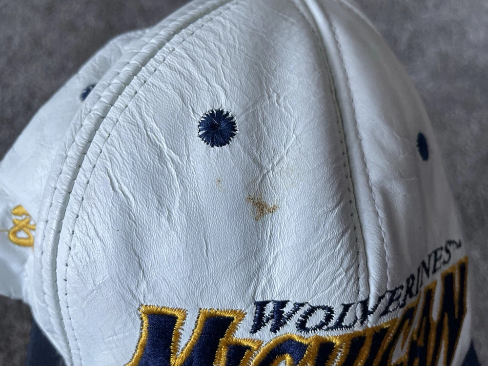 Vintage Michigan Wolverines Hat Cap Mens White Snap Back Genuine Leather USA 90s