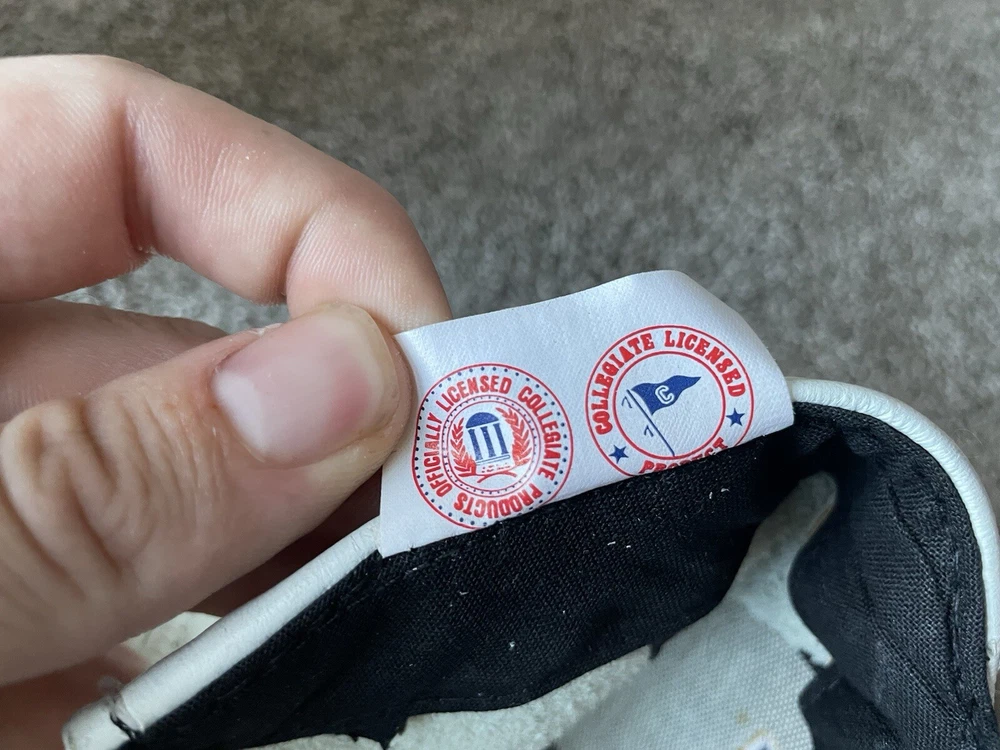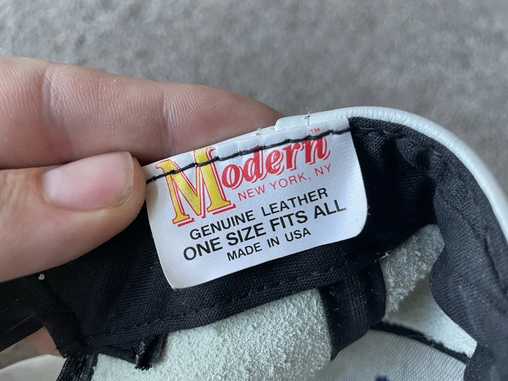 Show your support for the Michigan Wolverines with this vintage white snap-back hat. Made with genuine leather, this hat is perfect for any fan who loves football and wants to represent their team during the regular season and playoffs. The hat features the team's logo on the front and is one size fits all. This hat is a great addition to any fan's collection and is perfect for those who love vintage clothing. Made in the United States, this hat is a great way to show your patriotism while supporting your favorite team. Get your hands on this 90s-era hat today and complete your fan gear!