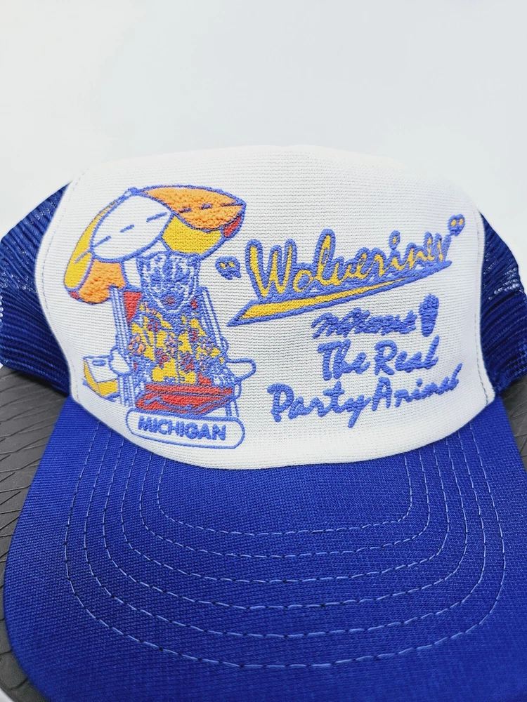 Vintage Michigan Wolverines Party Animal Mesh Trucker Hat 1980s USA Made RARE