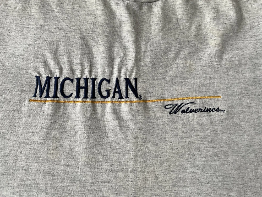 Crafted by Apparel Sales Company, this vintage Michigan Wolverines shirt is a testament to classic college football fandom. The shirt features a bold, embroidered spell-out of the team's name, showcasing the iconic gray color that's perfect for game day or everyday wear. Designed for the regular season and beyond, it's a must-have for any die-hard fan looking to show their team spirit. With a comfortable size large fit, this shirt is made for men who want to represent their allegiance to the Michigan Wolverines. Made in the United States, it's a piece of fan memorabilia that captures the spirit of the playoffs and the fervor of college sports. Whether you're at the stadium or out with friends, this shirt is sure to be a conversation starter.
