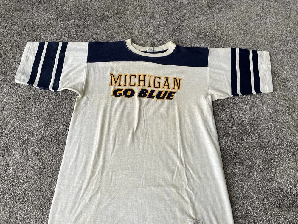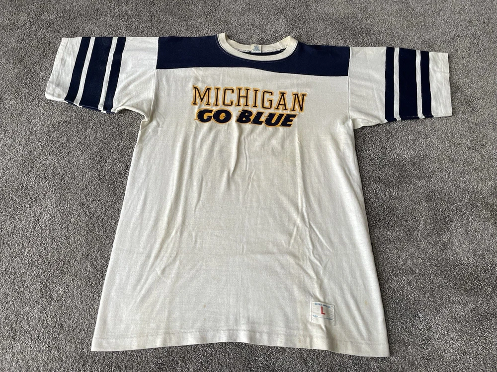 Vintage Michigan Wolverines Shirt Mens Large White Blue 70s Artex Football NCAA