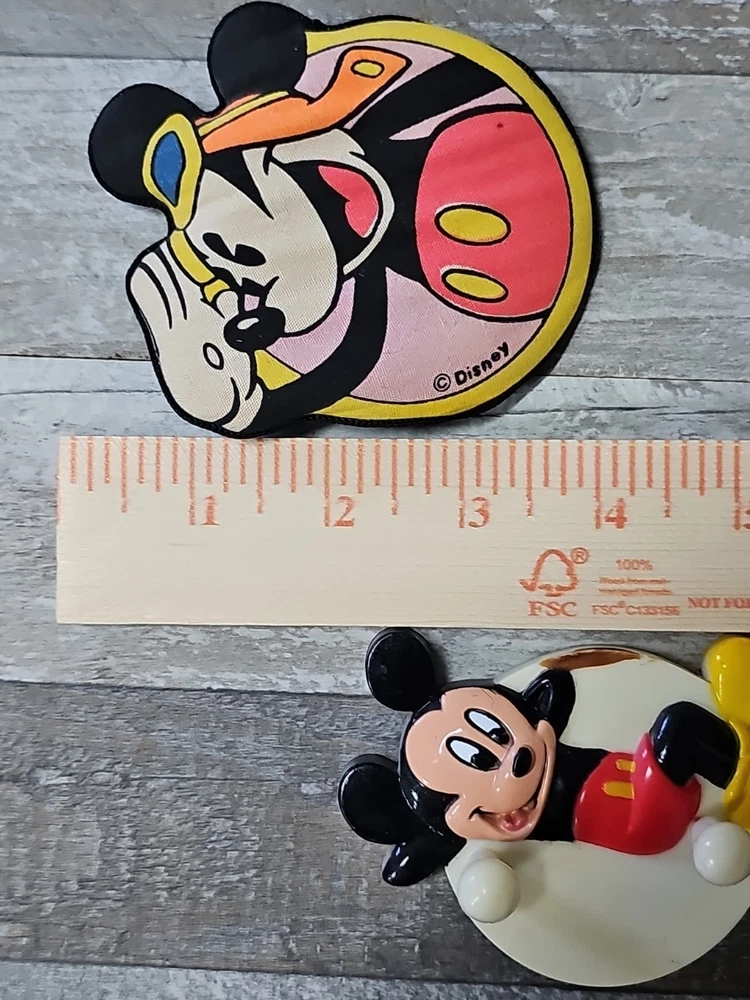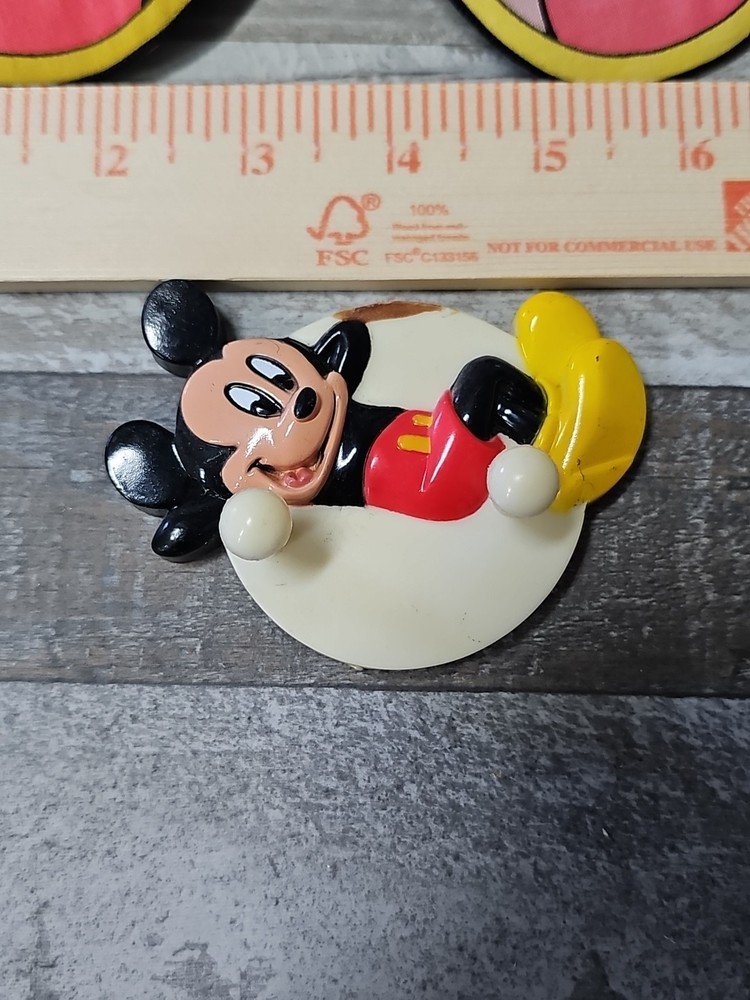 This lot of 3 vintage Mickey Mouse magnets from Disney are a nostalgic collectible for fans of the iconic character. Made in China in 1980, these magnets showcase the timeless charm of Mickey Mouse and are a unique addition to any Disneyana collection. Perfect for displaying on refrigerators or other magnetic surfaces, these vintage magnets capture the essence of the beloved Disney franchise. Please see pictures for details on condition.