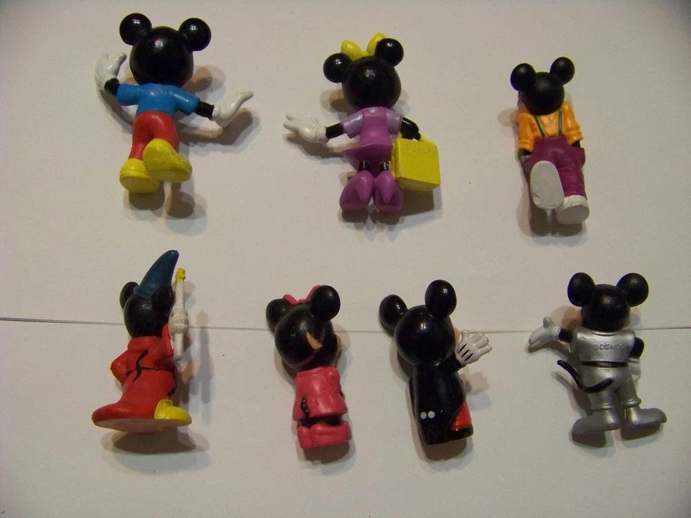 Lot of 7 Mickey Mouse and Minnie Mouse figurines. These are being sold as a lot. Some are marked made in Hong Kong some China. Most are marked Disney. They are all used but in good played with condition. Not sure what they are made of pvc? plastic? rubber? Approximately 2 -2 1/2 inches. A nice lot. I will usually ship within three business days after receiving cleared payment. I will leave feedback after you are satisfied with item. I do my best to honestly accurately and clearly describe all items. Look at the pictures for best description of condition. All items "as is". If you have any further questions, please do not hesitate to ask