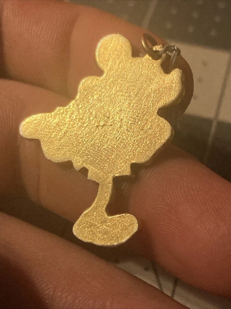 This vintage Mickey Mouse pendant is a must-have for any Disney fan. The rare item is perfect for collectors and enthusiasts alike. The pendant features the iconic character in his classic pose, making it a great addition to any Disneyana collection. Crafted with quality materials, this pendant is sure to stand the test of time. The Disney franchise has been known for its timeless characters and this pendant is no exception. Whether you're a fan of Mickey Mouse or just looking for a unique piece of jewelry, this vintage pendant is sure to impress.